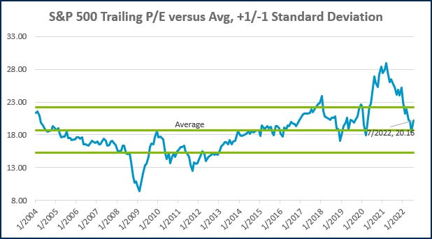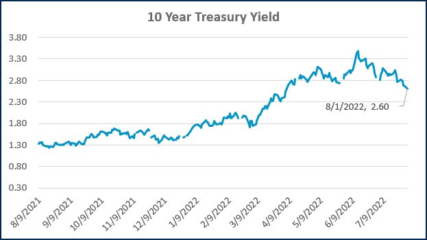 - Data published last week showed the economy generated negative GDP growth for the second consecutive quarter. While this meets a common (simplistic) definition of a recession, it does not definitively mean we are already in one. Additionally, the Bureau of Economic Analysis (BEA) published July’s reading of Personal Consumption Expenditures (PCE), which represents the Federal Reserve’s preferred gauge of inflation. Both the headline and core (which excludes the volatile food and energy categories) indices came in higher than expected.