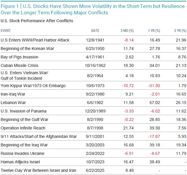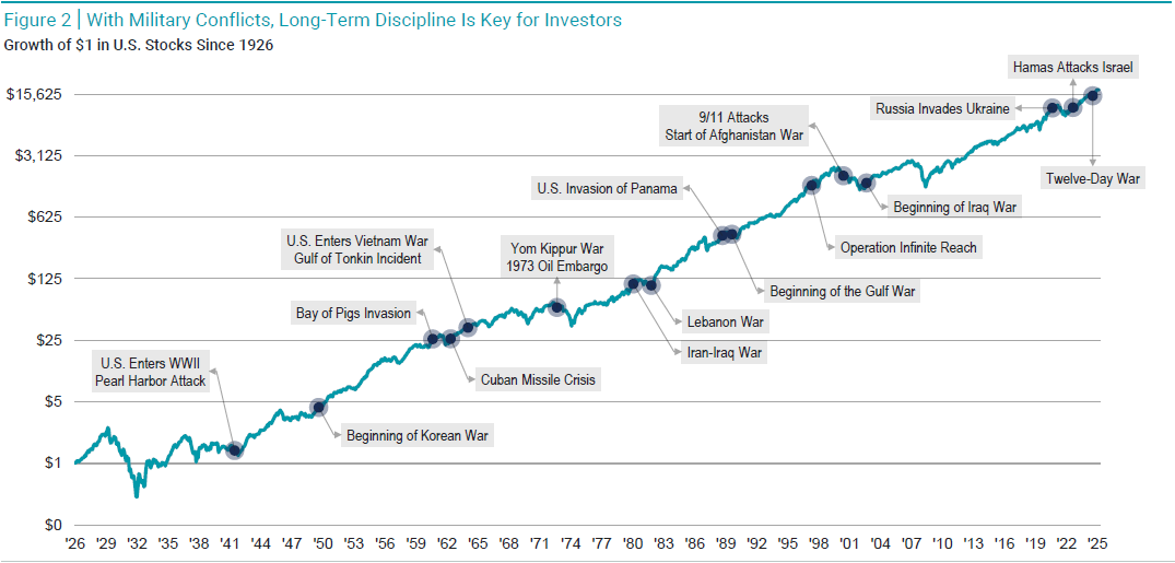 While every conflict is unique, the market’s reaction to geopolitical events has historically followed a fairly consistent pattern: short-term volatility followed by a return to focusing on economic fundamentals.